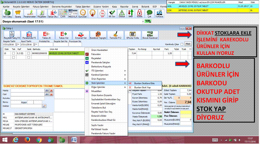 · ÜRÜNLERİ OKUTUP STOKLARA EKLE DEDİĞİNİZDE ÜRÜNLER STOKLARINIZA EKLENMİŞ OLUR