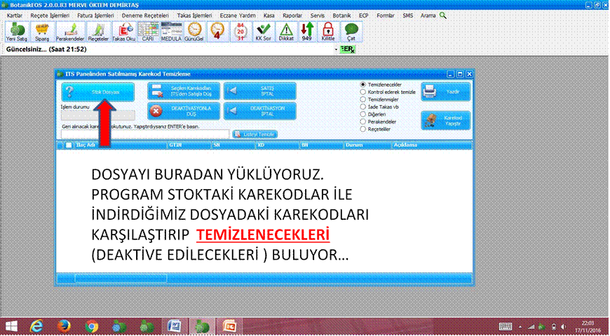 AÇILAN İTS PANELİNDEN STOK İNDİRE TIKLANIR