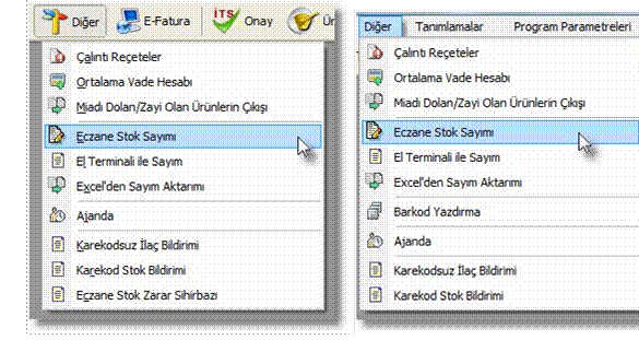 1. Diğer menüsünden “Eczane Stok Sayımı” bölümüne girelim: