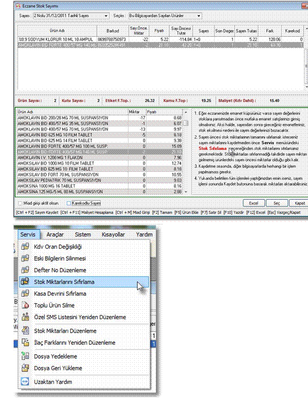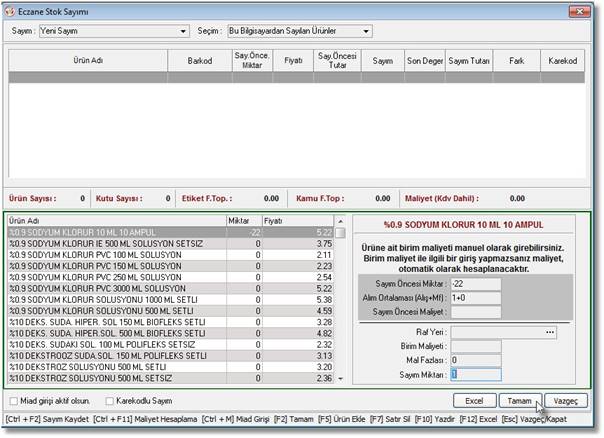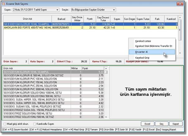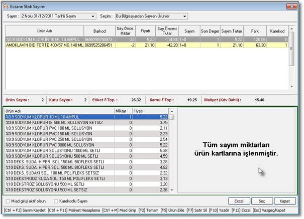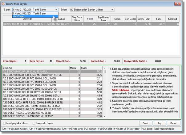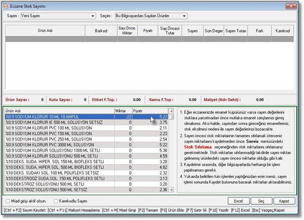 Eczane Stok Sayımına başlamadan önce tüm satış işlemlerinizi bitiriniz. Hem sayım yapıp hem de satış işlemleri yapamazsınız.