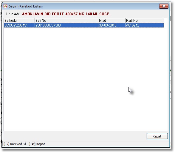 Açılan ekranda silmek istediğimiz Karekodu seçip F7 tuşuna basarak silebiliriz.