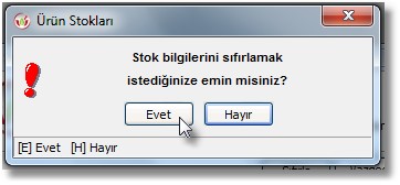 Gelen sorulara evet dedikten sonra stok miktarları sıfırlanacaktır.
