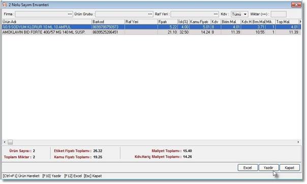 Sayım ekranına dönerek CTRL+F2 tuşana basarak sayım kaydetme işlemini başlatalım.