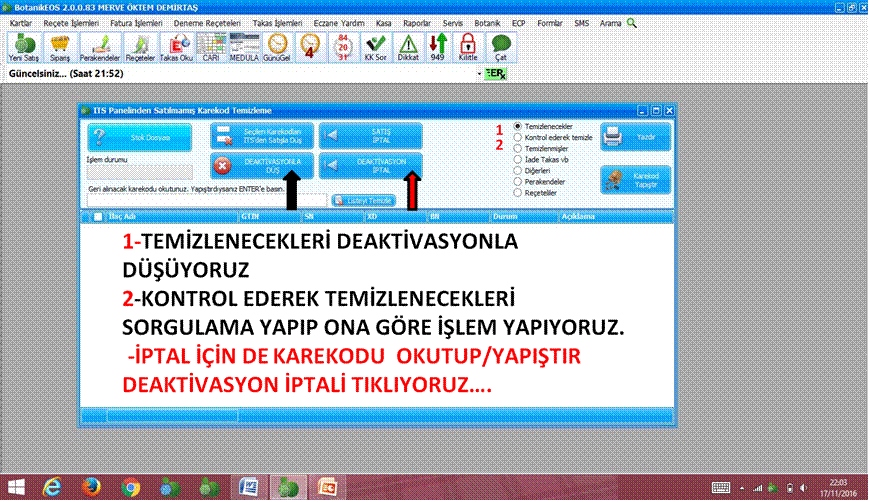 · İŞLEMİ YAPAR İLACI RAFINA/BÖLÜMÜNE GERİ KOYARSINIZ