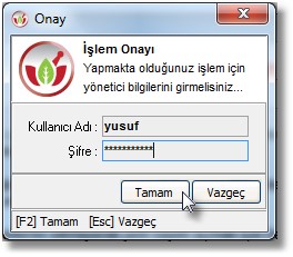 İşlem Onayı ekranına yönetici kullanıcı adı ve şifresini girerek onaylayım:
