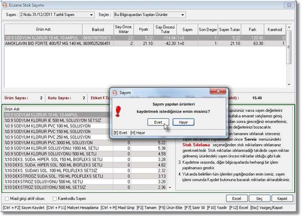 Eczane Stok Sayımına başlamadan önce tüm satış işlemlerinizi bitiriniz. Hem sayım yapıp hem de satış işlemleri yapamazsınız.